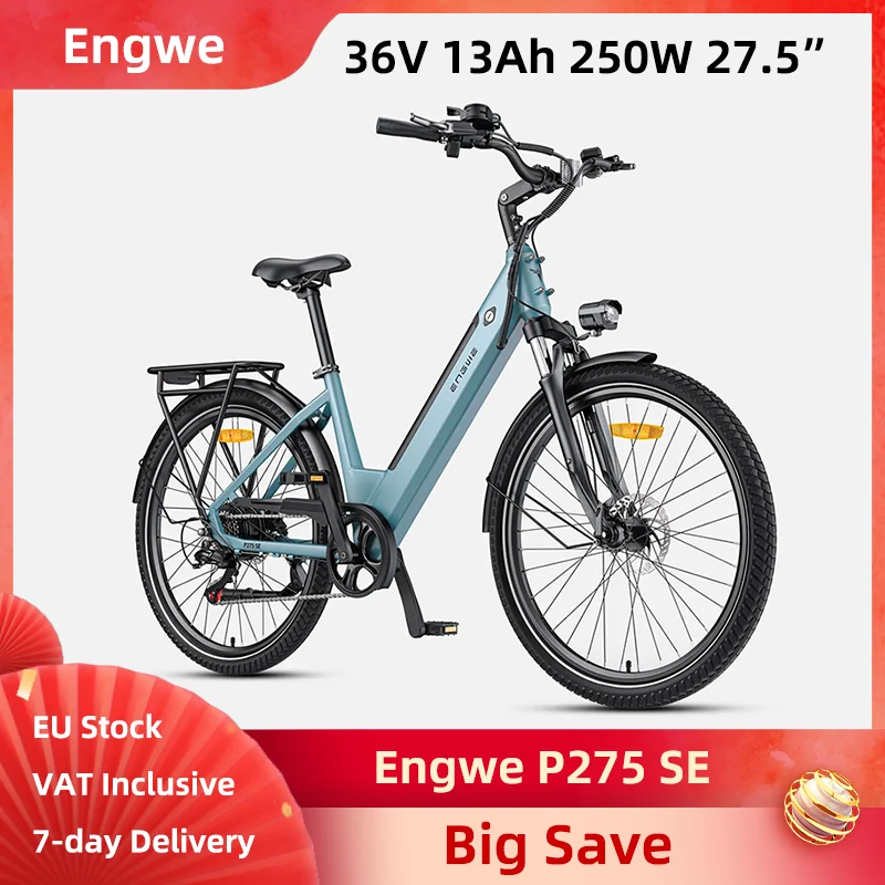 Engwe P275 SE Bici elettrica 250W 36V 13Ah 27.5*1.95" Slim City Pneumatici E-bike Freni a disco idraulici anteriori posteriori Controllo APP a 7 velocità