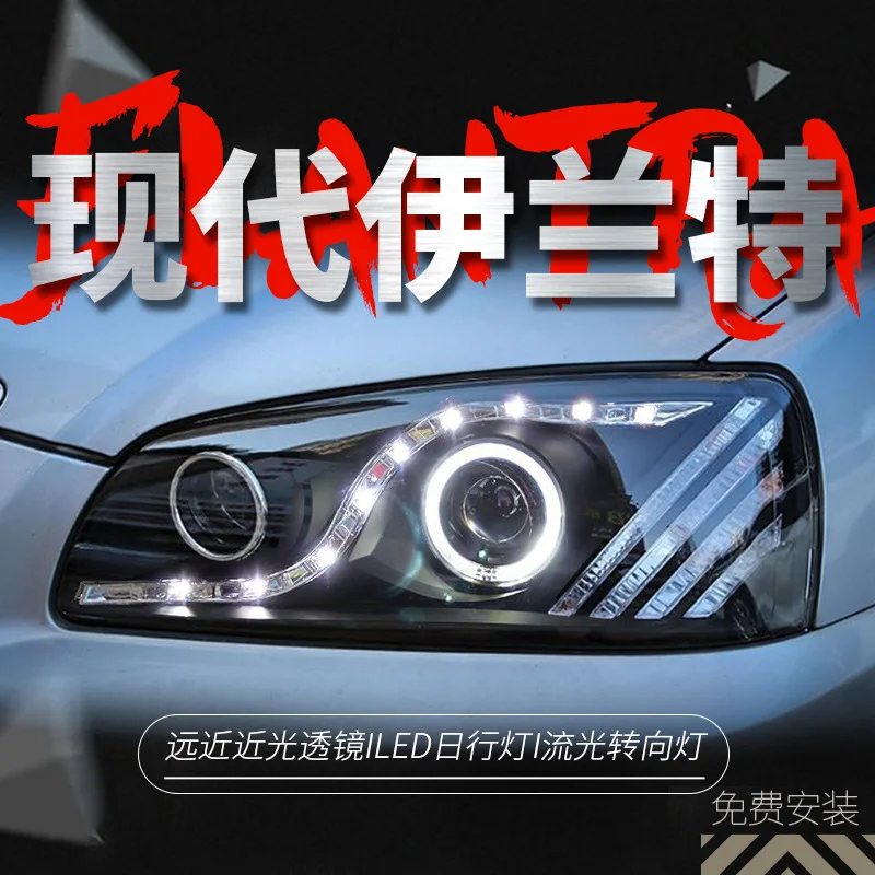 Dedicato al moderno gruppo ottico Elantra 04-08 fari allo xeno con lente angelo a LED modificati a forma di strappo
