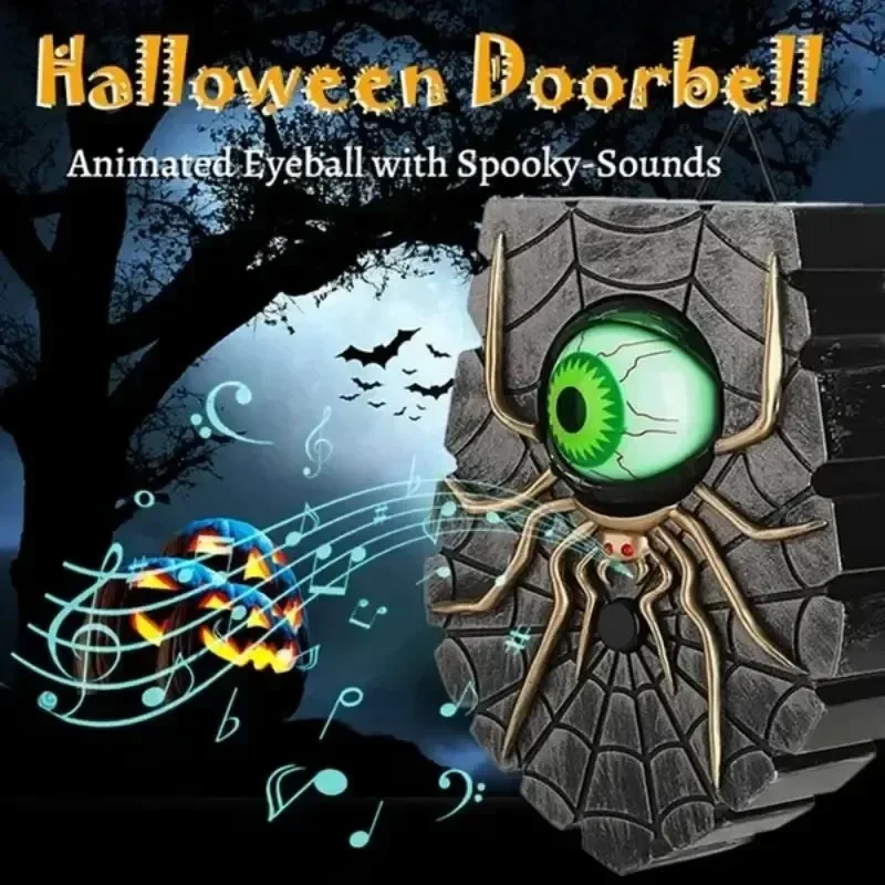 Campanello con un occhio Decorazione per la casa di Halloween Campanello con ragno con bagliore spaventoso/Suono fantasma Campanello creativo con bulbo oculare di ragno spaventoso