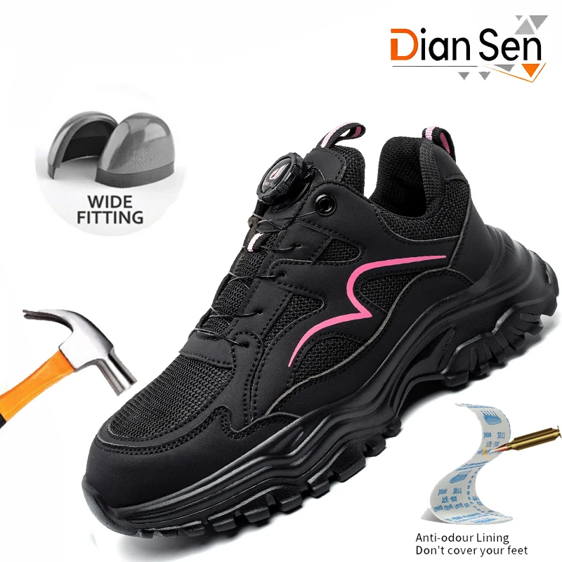 Scarpe da ginnastica leggere e traspiranti da donna, scarpe antinfortunistiche con punta in acciaio, scarpe protettive indistruttibili anti-schiacciamento, scarpe da trail running per esterni
