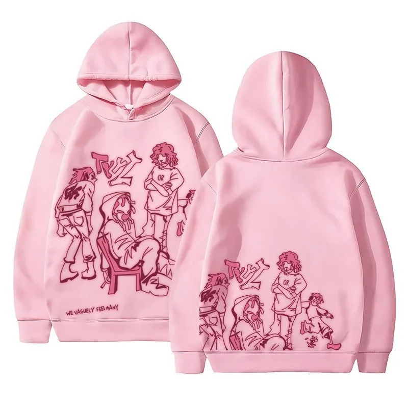 Felpa con cappuccio Y2K Graffiti Streetwear Felpa sopra la testa con stampa cartoon allentata casual rosa Felpa in cotone con cerniera a maniche lunghe unisex