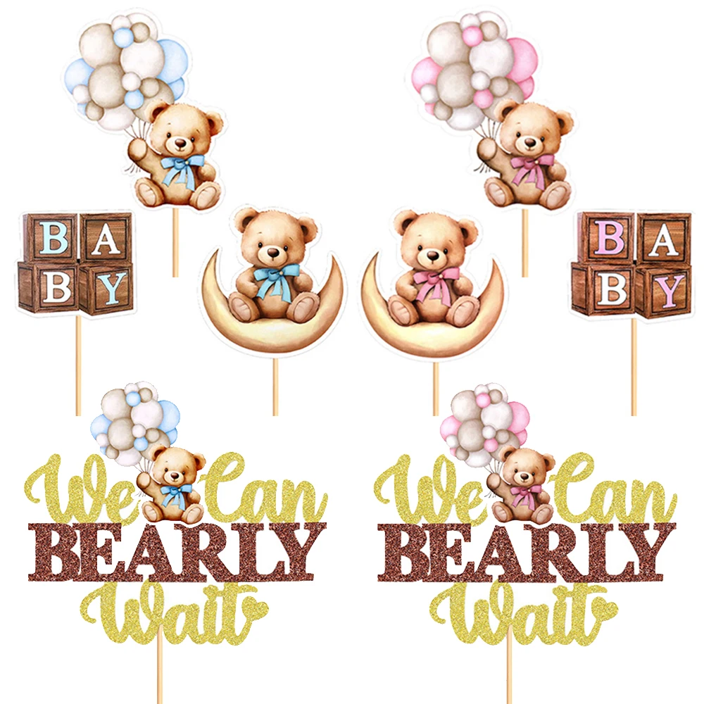 Teddy Bear Cake Toppers We Can Bearly Wait BABY Bear Cupcake Top Baby Shower Gender Reveal Boys Girls Birthday Party Cake Decor
