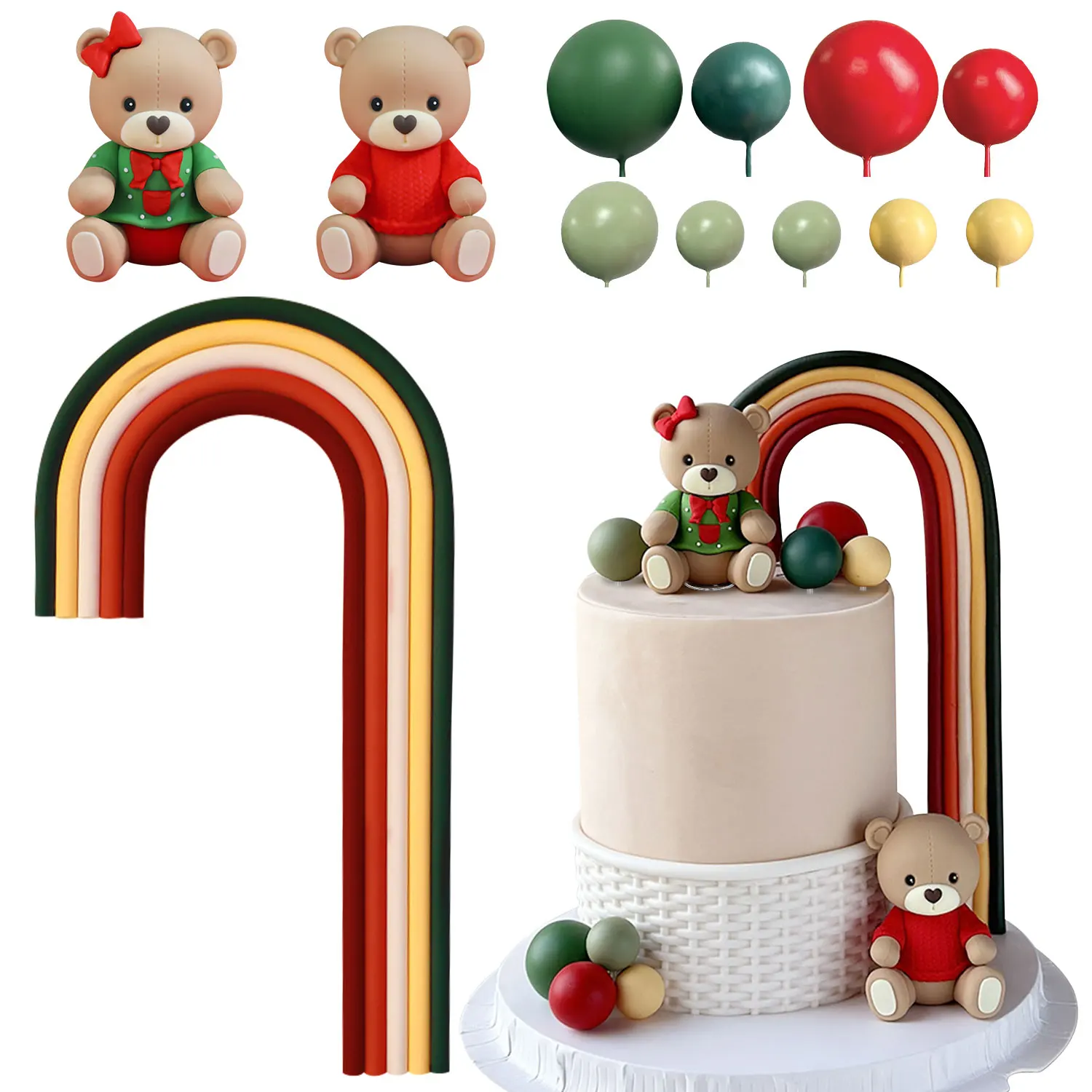12 maglioni rossi di cartoni animati natalizi, camicie verdi, figurine di orsacchiotti, archi arcobaleno, scatole regalo, decorazioni per torte in gomma morbida