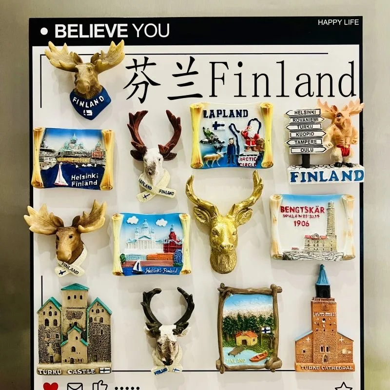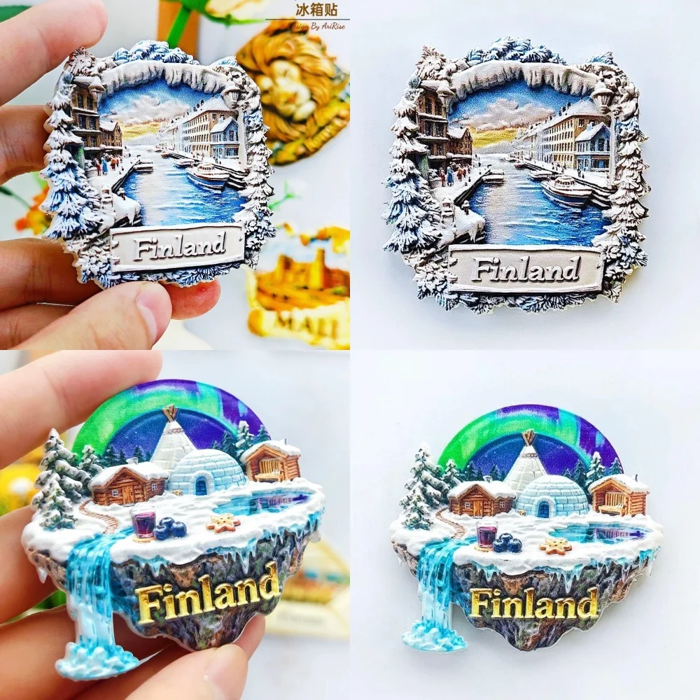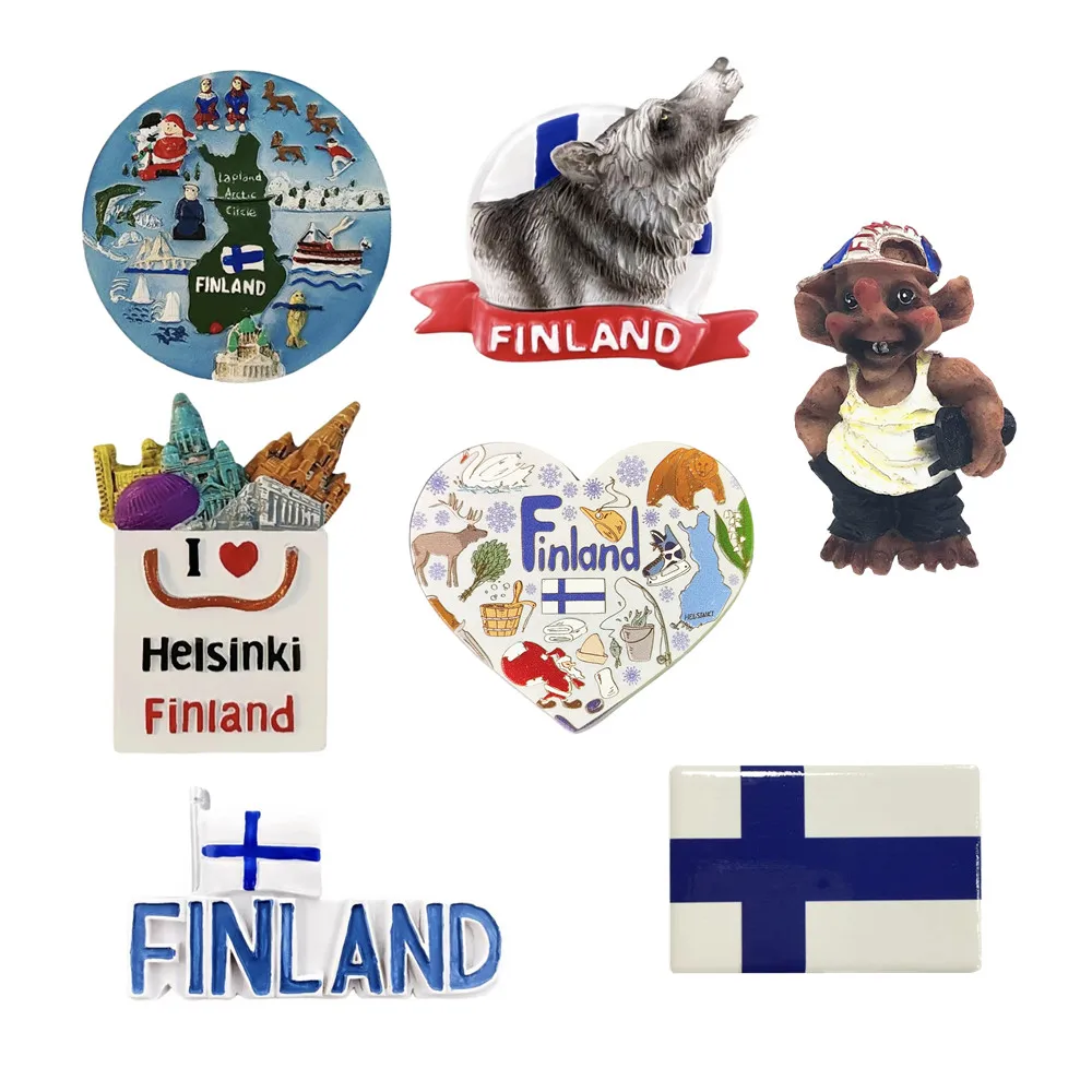 Magneti da frigorifero 3D Finlandia, magneti da frigorifero souvenir da viaggio, magneti da frigorifero creativi fatti a mano