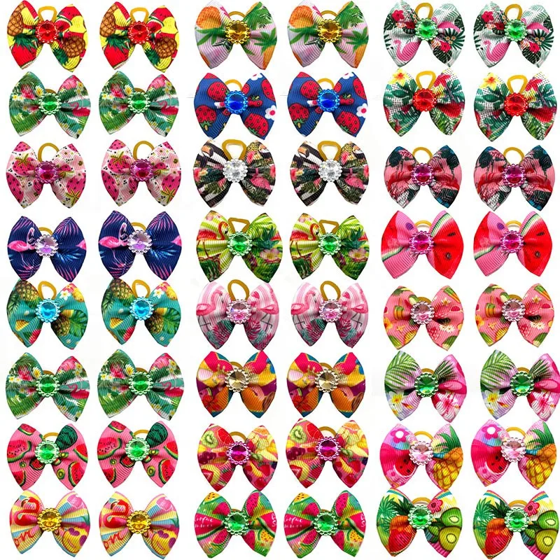 50/100pcs archi per cani da compagnia modello di frutta estiva forniture per cani elastici gatto peli di cane archi Yorkshire Dog Grooming archi forniture per animali domestici