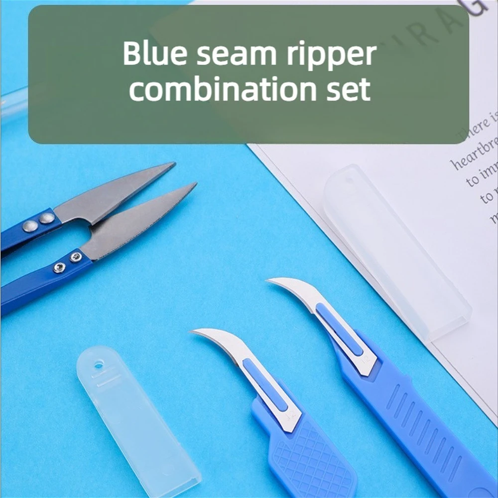 Kit di 1/5 Pezzi Blu per Rimuovere i Punti di Cucito con Tagliafilo e Forbici per Progetti di Quilting, Cucito e Artigianato per la Casa