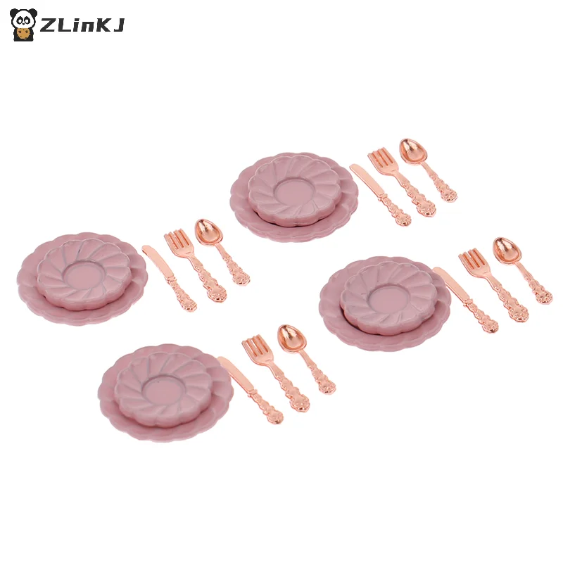 ▶ Decorazione per Casa delle Bambole 1:12 con Utensili (Set di Coltello, Forchetta, Cucchiaio e Piatto) - Modello di Arredamento per Cucina e Regalo Decorativo in Miniatura