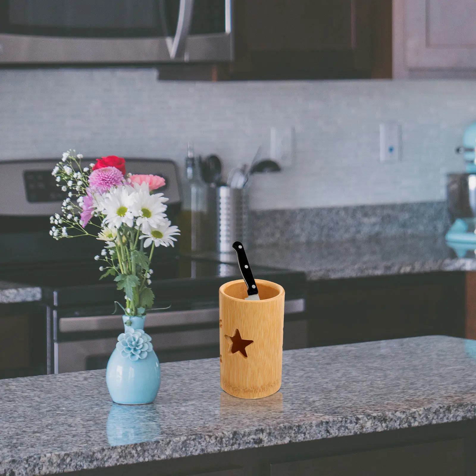 Portautensili da Cucina in Bambù Premium per Coltelli, Forchette e Cucchiai, Organizzatore Resistente all'Usura e alle Rotture