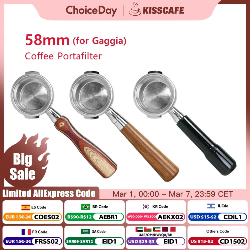 Portafiltro senza fondo per GAGGIA - Maniglia per caffè espresso in acciaio inossidabile 304 con design ad orecchio angolato da 58 mm con doppio cestino (2 tazze)