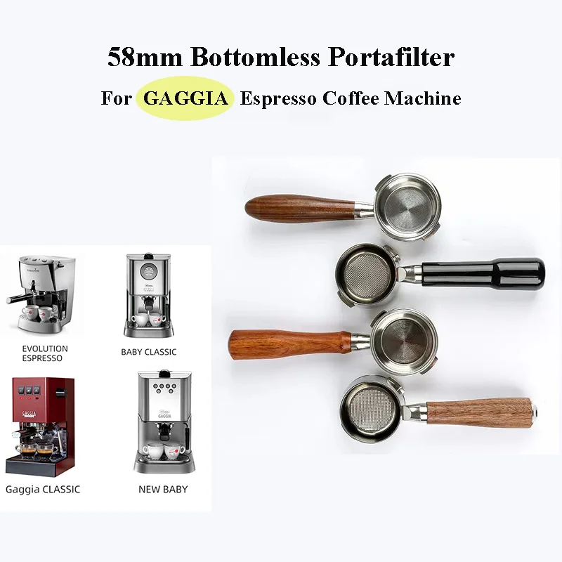 Portafiltro cavo senza fondo da 58mm per GAGGIA/Baby/Classic/Deluxe/Tebe/Espresso Evolution manico per caffè in acciaio inossidabile