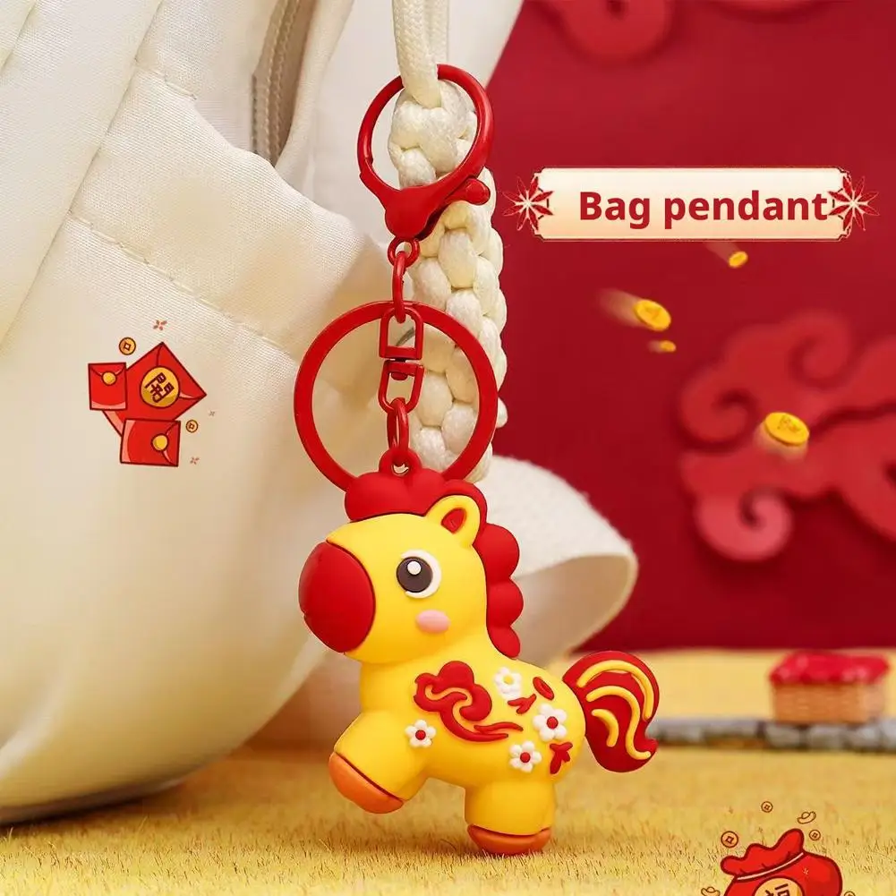 Ciondolo chiave zodiacale Capodanno del cavallo - Ottieni denaro ora bambola mascotte a tema piccolo regalo creativo per decorazioni festive 2 pezzi