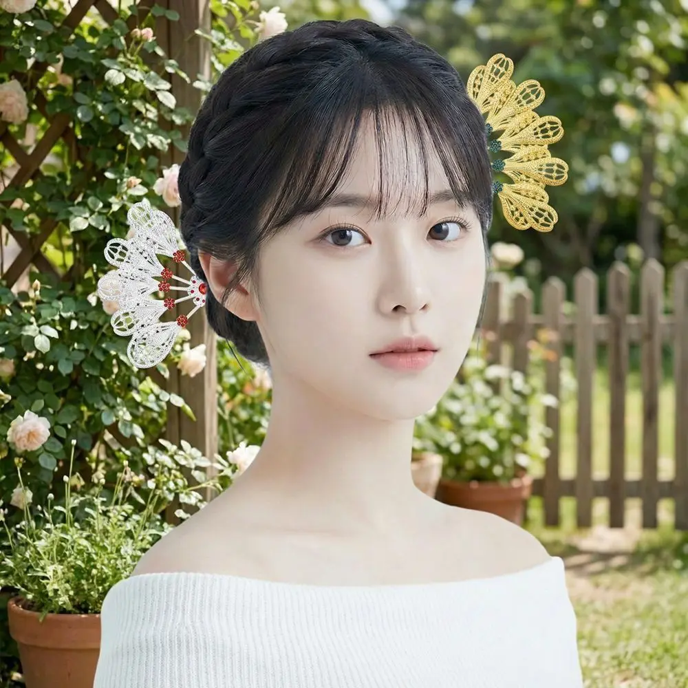 Fermaglio per capelli dorato con strass a forma di fiore, in metallo con cristalli, stile thailandese, forcina a foglia, gioiello per capelli etnico cavo argentato, tradizionale