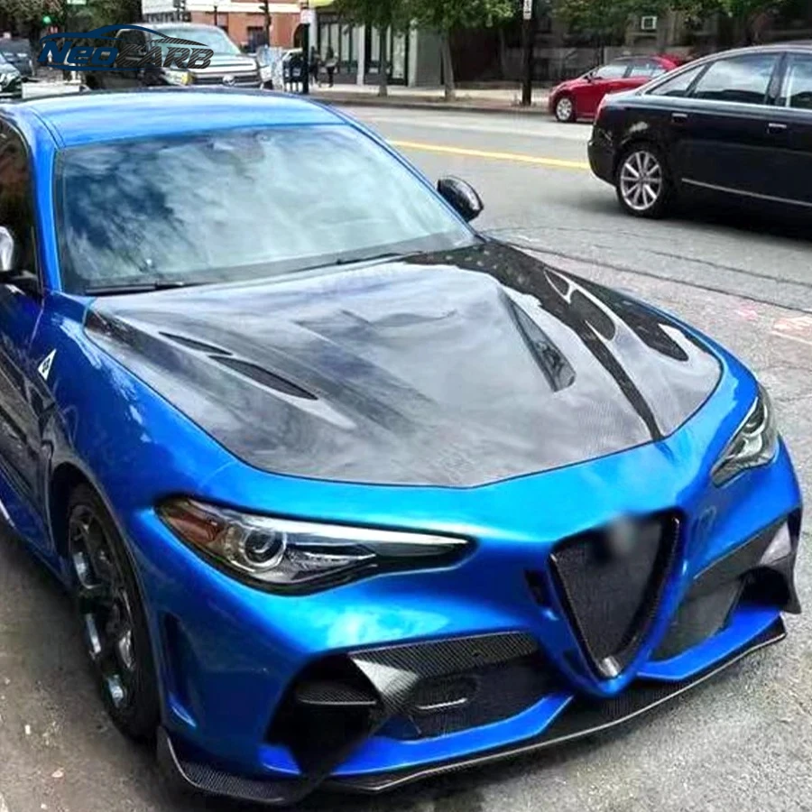 Per Alfa Romeo Giulia Auto Paraurti Anteriore Copertura Del Motore Cofano Cofano Vent Parti In Fibra di Carbonio Aggiornamento Body kit