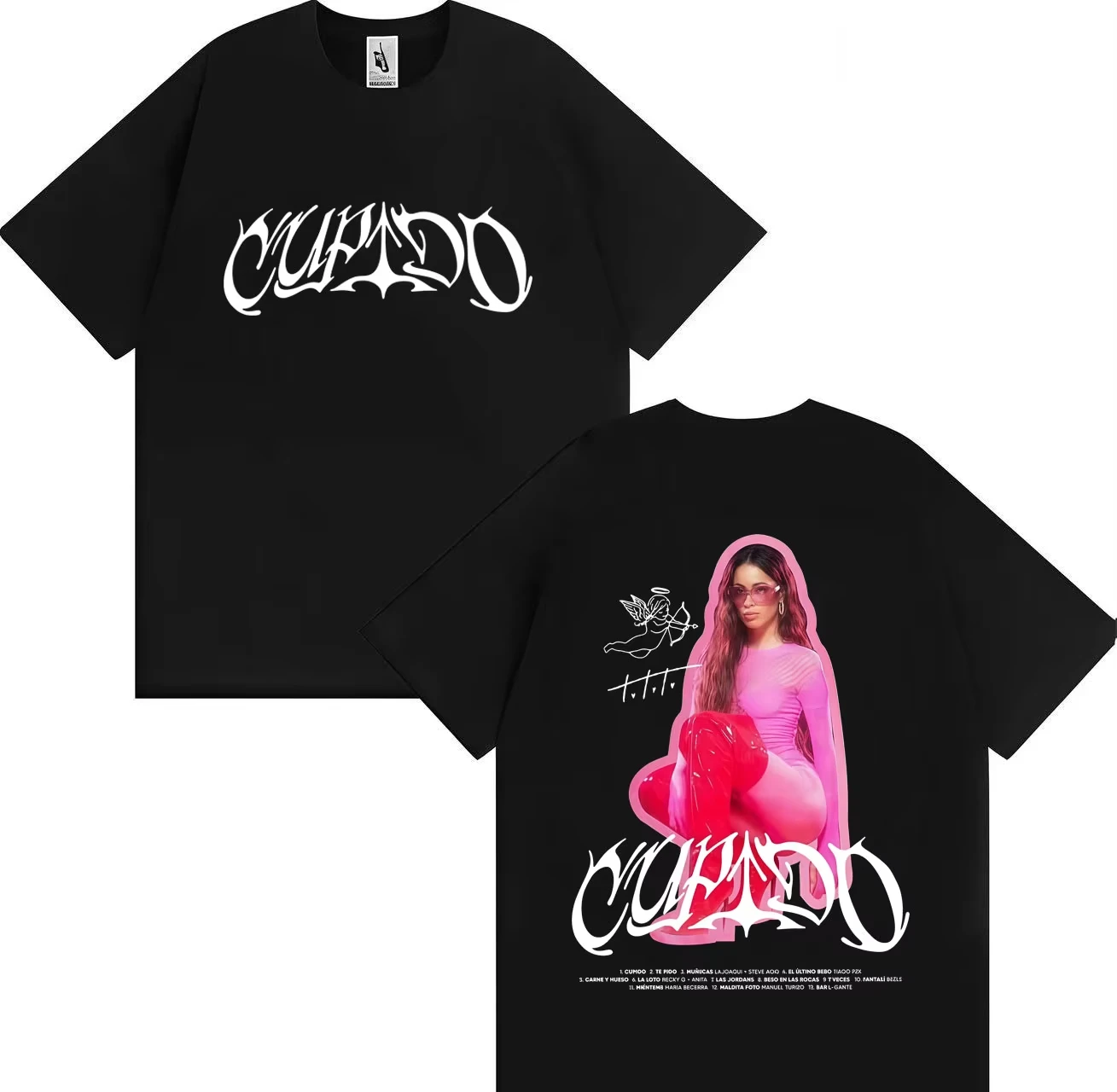 T-Shirt Casual da Uomo in Puro Cotone con Stampa Estiva Hip-hop, Stampa Fronte-Retro - Collezione TINI 2026 Tour
