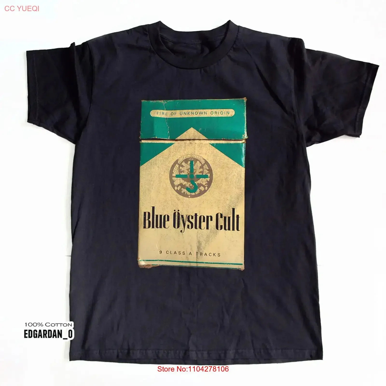 Maglietta vintage lavata Blue Oyster Cult Fire of Unknown Origin con stampa confezione di sigarette, nera, taglie dalla S alla 5XL, per uomo, per tutti i giorni