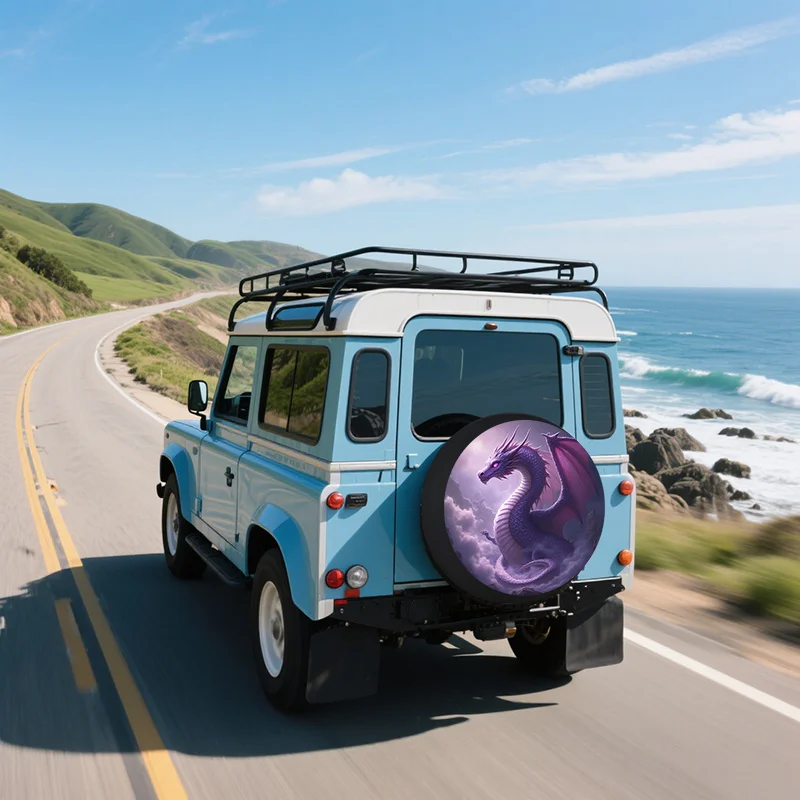 Copriruota di scorta per auto con stampa drago viola fantasia, 1 pezzo | Magical Pink Eye, protezione solare universale, decorazione accattivante per SUV Jeep, R