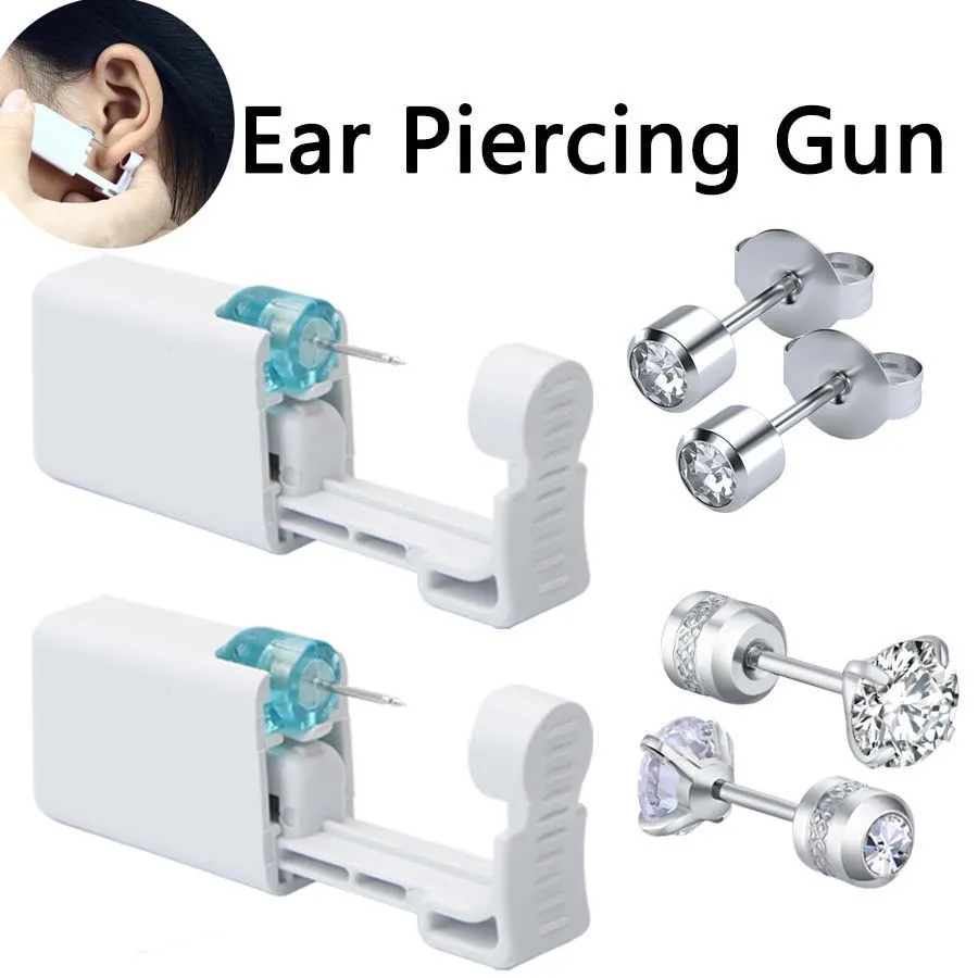 Pistola per piercing all'orecchio usa e getta da 2 pezzi con orecchini a bottone incorporati, kit per piercing all'orecchio ipoallergenico da 2 pezzi con zirconi cubici