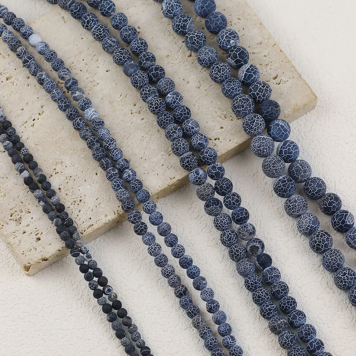 SHIJIWLS Perline di agata patinata colorata Vene screpolate Agate per creazione di gioielli Collana fai da te Bracciale Orecchino 4/6/8/10mm