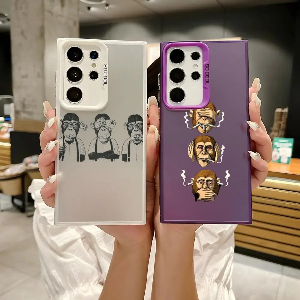 Custodia per telefono Fashion Three Monkeys in silicone colorato argento per Samsung Galaxy S25 Edge S24 S23 S22 S21 S20 Ultra