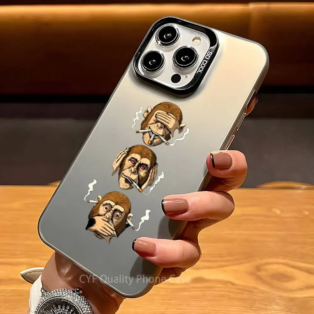 Comic three monkeys Phone Case For Apple 11 12 13 14 15 16Pro Max Plus Protect Plating Phone Cover