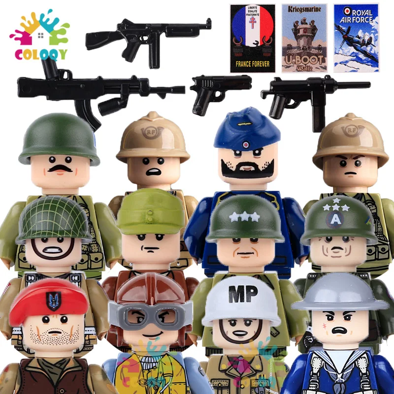 WW2 Soldato Militare Figure Building Blocks Britannico Italiano Guerriero Francese Ufficiale Dell'esercito Medico Marina Fanteria Cappello Pistola Mattoni Giocattoli