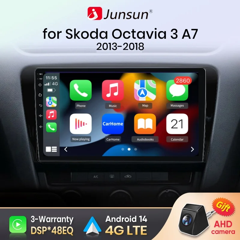 Autoradio Junsun Wireless CarPlay Android Auto per SKODA Octavia 3 A7 2013-2018 GPS Multimedia 2 din Sistemi Stereo DSP SWC RDS