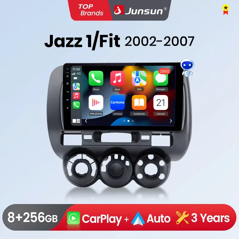 Autoradio Junsun Wireless CarPlay Android Auto per Honda Fit Jazz City 2002 2003 2004-2007 GPS Multimedia 2 din GPS FM BT SWC