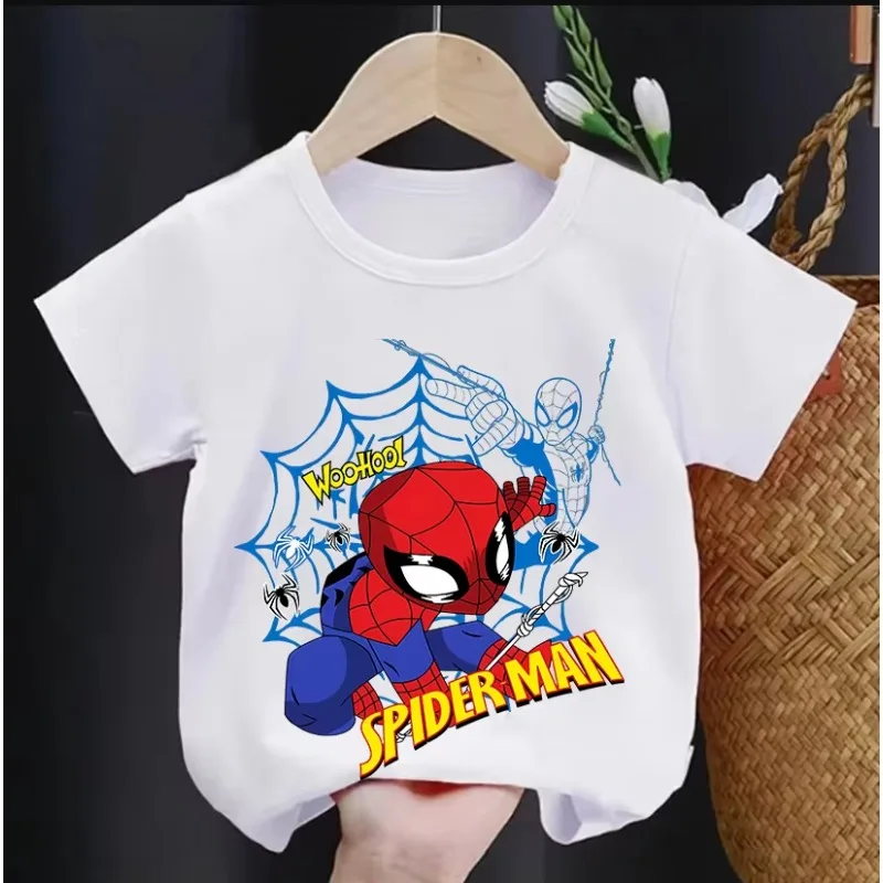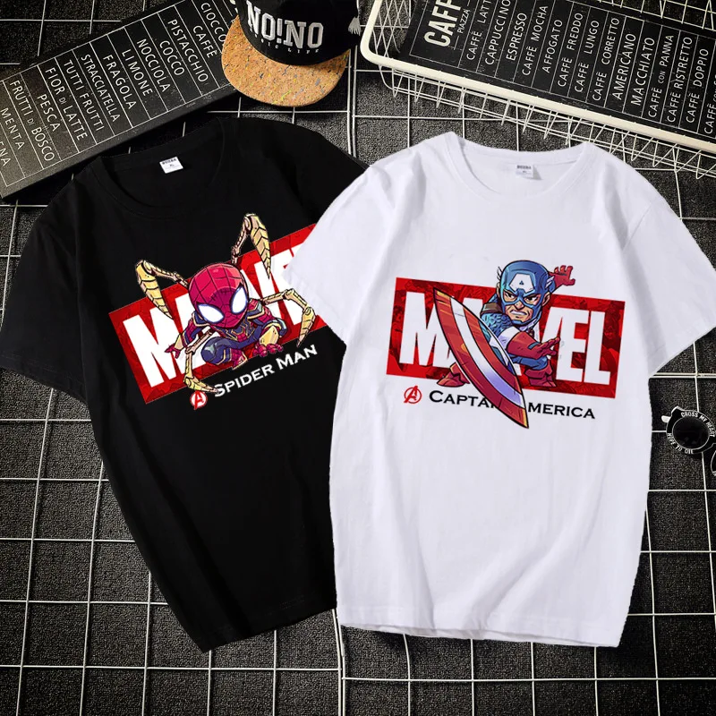 T-shirt girocollo per bambini stampata Avengers Marvel Spider Man, T-shirt estiva in puro cotone stampata per genitori e figli, alla moda e casual