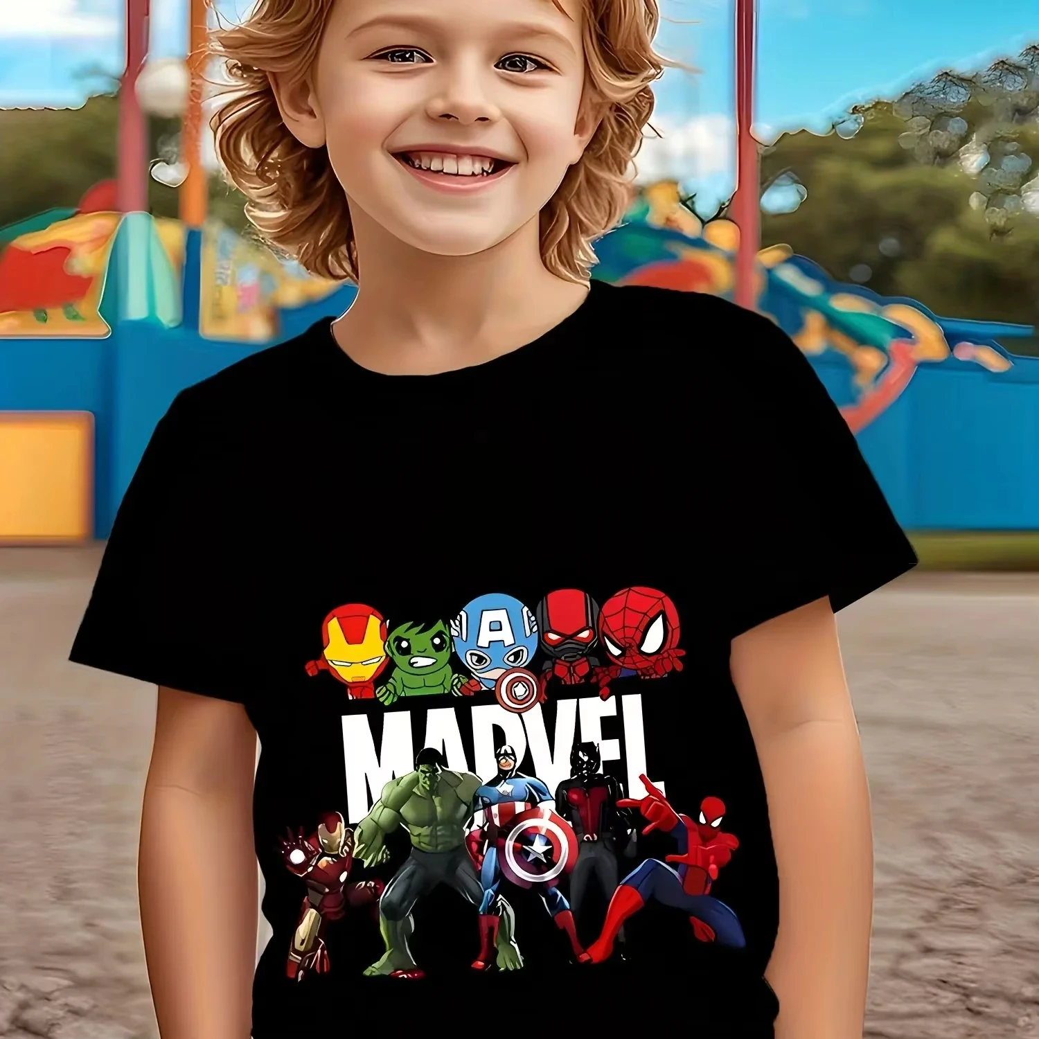 Maglietta Marvel Avengers per ragazzi 3-12 anni con stampa multi-supereroe in morbido cotone traspirante, estiva 2026, casual, stile Y2K