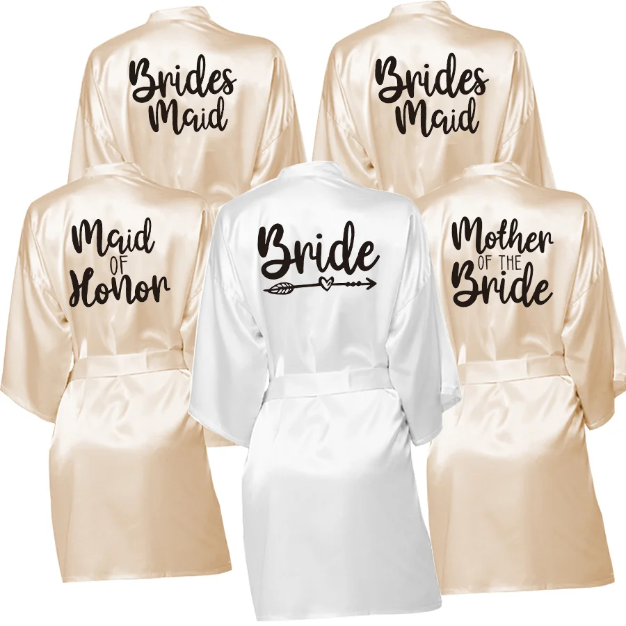 Vestaglie da Sposa e Damigella per Donne, Abito per Madre/Sorella della Sposa/Sposo, Pigiama in Seta e Raso, Kimono con Stampa di Lettere