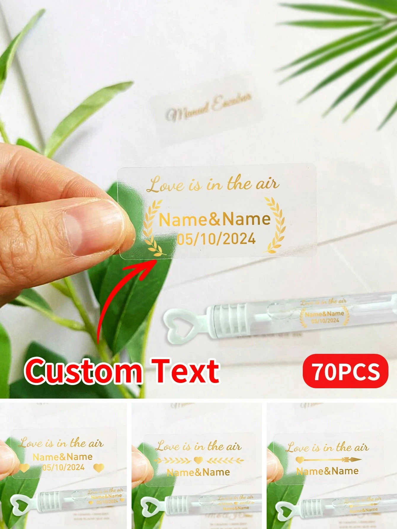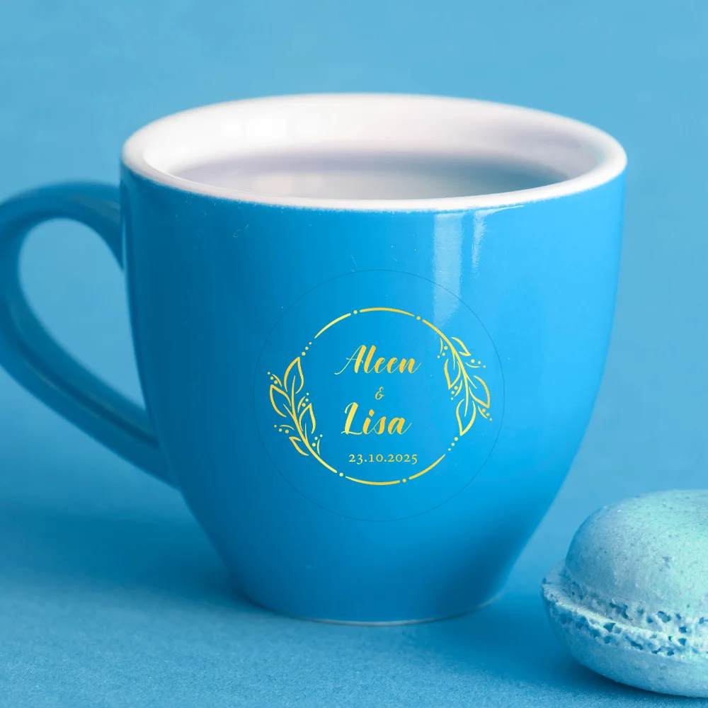48-240 Pezzi Adesivi Personalizzati con Nome e Data, Trasparenti in Oro, Impermeabili, Etichette Personalizzate in Lamina d'Oro per Matrimoni