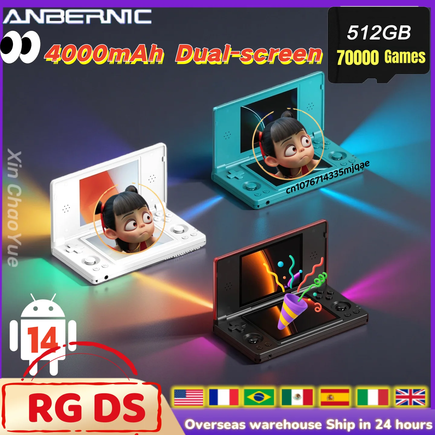 Anbernic RG DS Console di gioco portatile Lettore Doppio schermo IPS 4.0 Android 14 Doppia app Console per videogiochi retrò divise Interruttore Hall