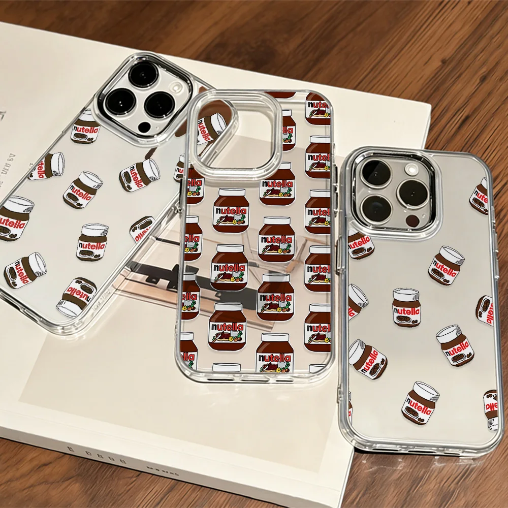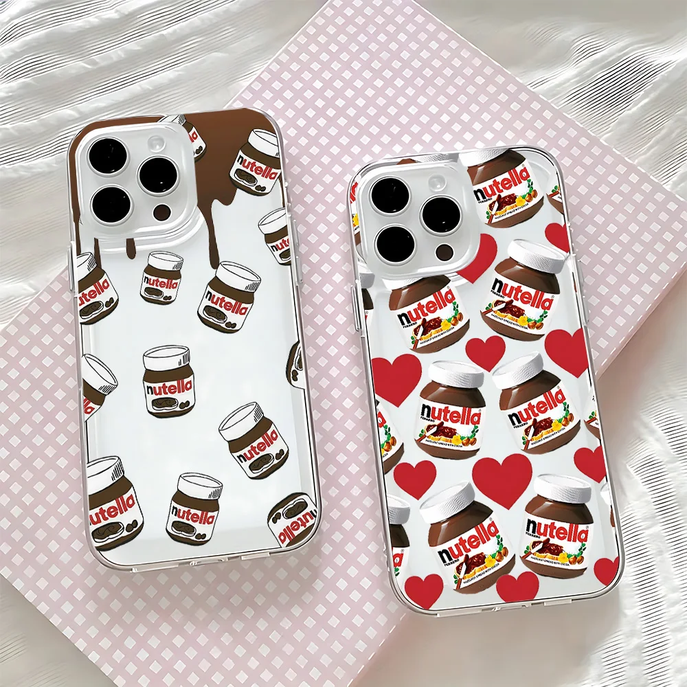 Custodia per telefono Cartoon Chocolate Nutellas per iPhone 17 16 16e 15 14 13 12 11 Mini Pro Max X XR XSMax 7 8 Air Plus Trasparente