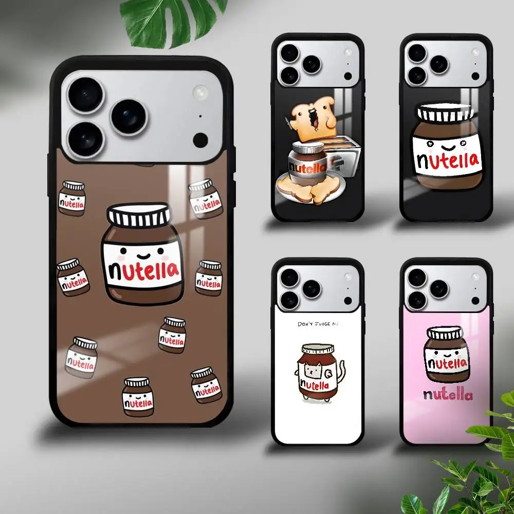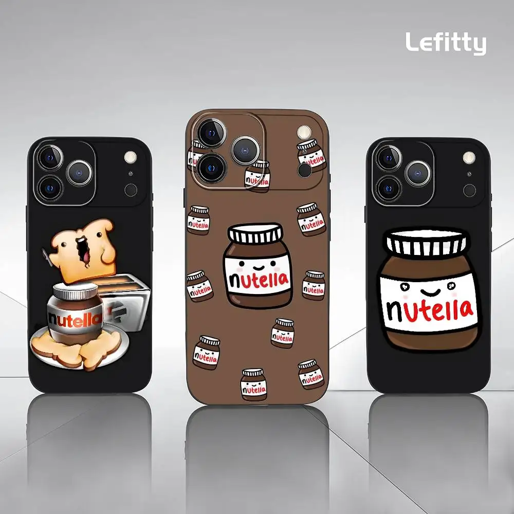 Carino N-Nutella Custodia per telefono al cioccolato per iPhone 17 16 15 14 13 Pro Xs Max Mini XR X 7 8 Plus Nero satinato Soft Shell Funda