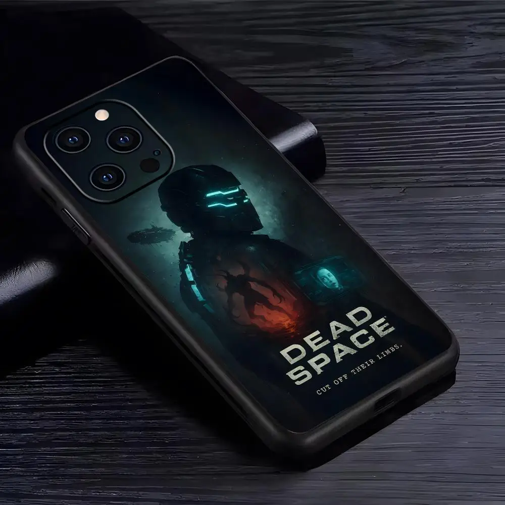 Cover Morbida Nera Antiurto per iPhone 17 16 16e 15 14 13 12Plus Mini Pro Max, Tema Gioco Dead Space