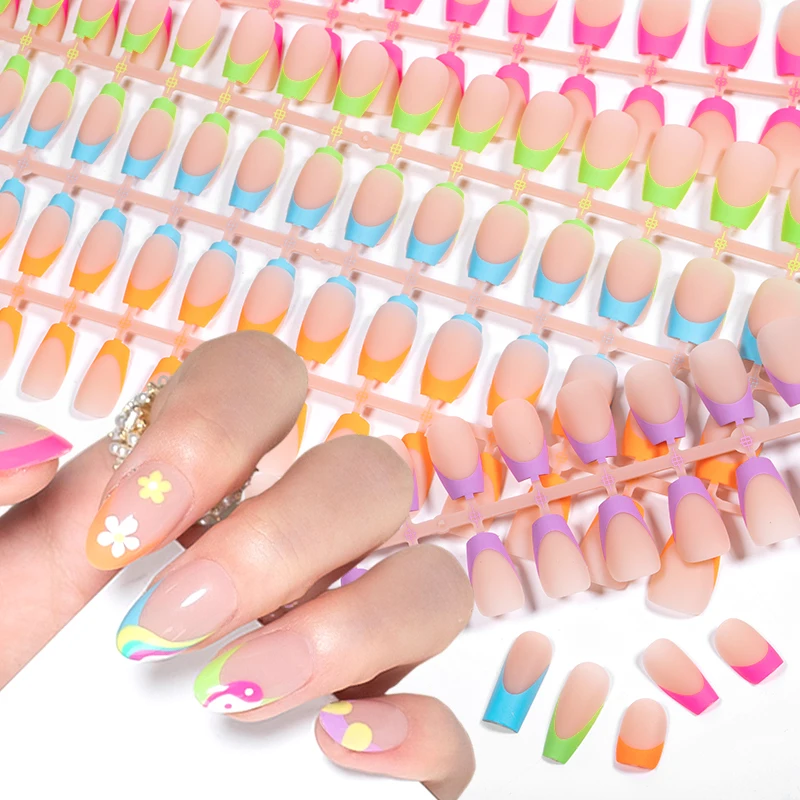 150/160 pz Stile Francese Luminoso Presse Sulle Punte Del Chiodo Lungo Quadrato Copertura Completa False Unghie Finte Soak Off Punte di Estensione Capsula