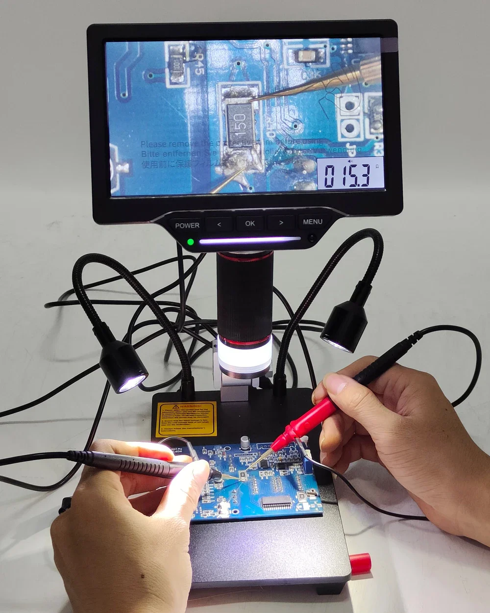 7 pollici 1080P 16MP LCD Video Microscopio elettronico digitale Fotocamera HDMI TF USB con funzione multimetro per saldatura PCB IC del telefono