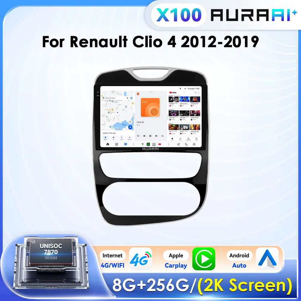 AURAAI X100 Carplay Android Autoradio per Renault Clio 4 2012-2019 Lettore video multimediale 2K Schermo GPS DSP WIFI 4G 2 Din Audio