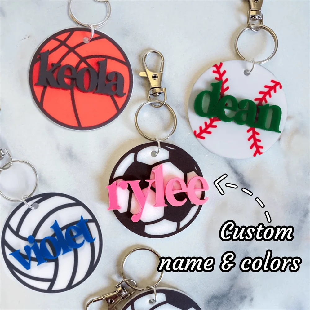 Portachiavi Personalizzato con Nome, Decorazione per Feste, Regalo Personalizzato per Basket, Pallavolo, Calcio, Baseball