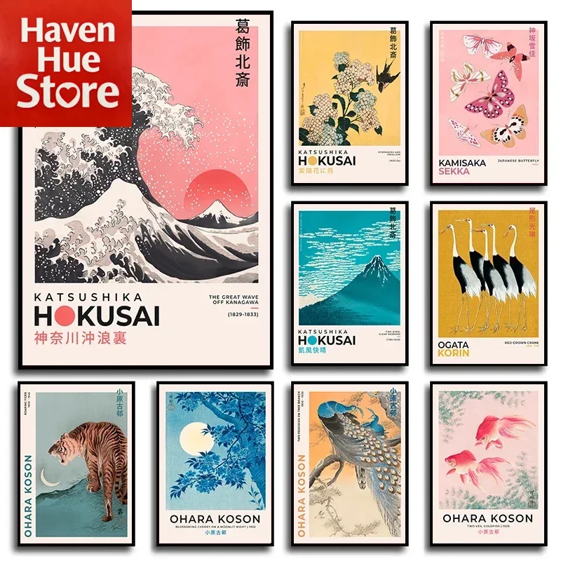 Giappone Katsushika Hokusai Paesaggio Tela Poster Vintage Ohara Montagne Stampe d'arte da parete per soggiorno moderno e decorazioni per la casa, fra