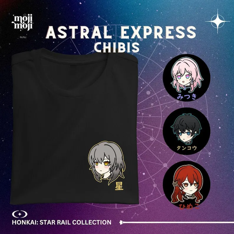 Honkai Star Rail Astral Express Chibi Camicia Himeko 7 marzo Dan Heng Stelle HSR Chibi Fan Art Merch Merch Regalo per i giocatori