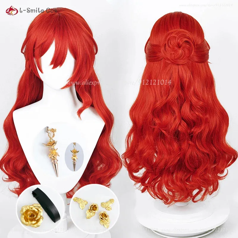 HSR Himeko Parrucca Cosplay 66 cm Lungo Rosso Ricci Parrucche Resistente Al Calore Capelli Sintetici Anime Costumi Cosplay Parrucca Per Le Donne + Protezione Della Parrucca