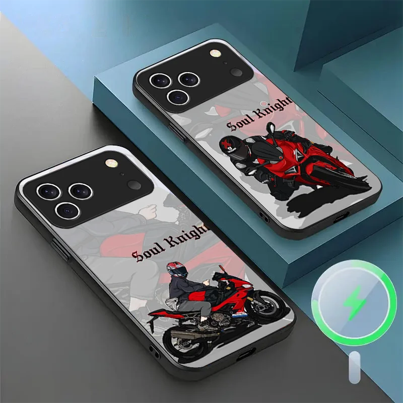 Per iPhone 17 Pro MAX AIR Custodia per telefono in vetro temperato magnetico Design per ragazzo motociclistico Alla moda e durevole