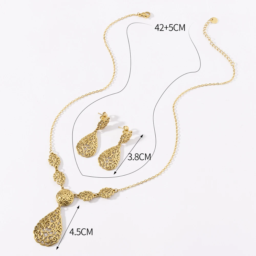 LUIZADA 2025 Marocco Orecchino Anello Collana Set di gioielli da sposa africani per le donne Hollow Arabesque Bijoux da sposa Regalo