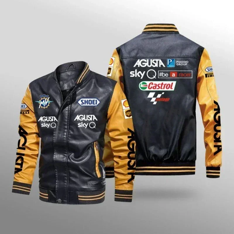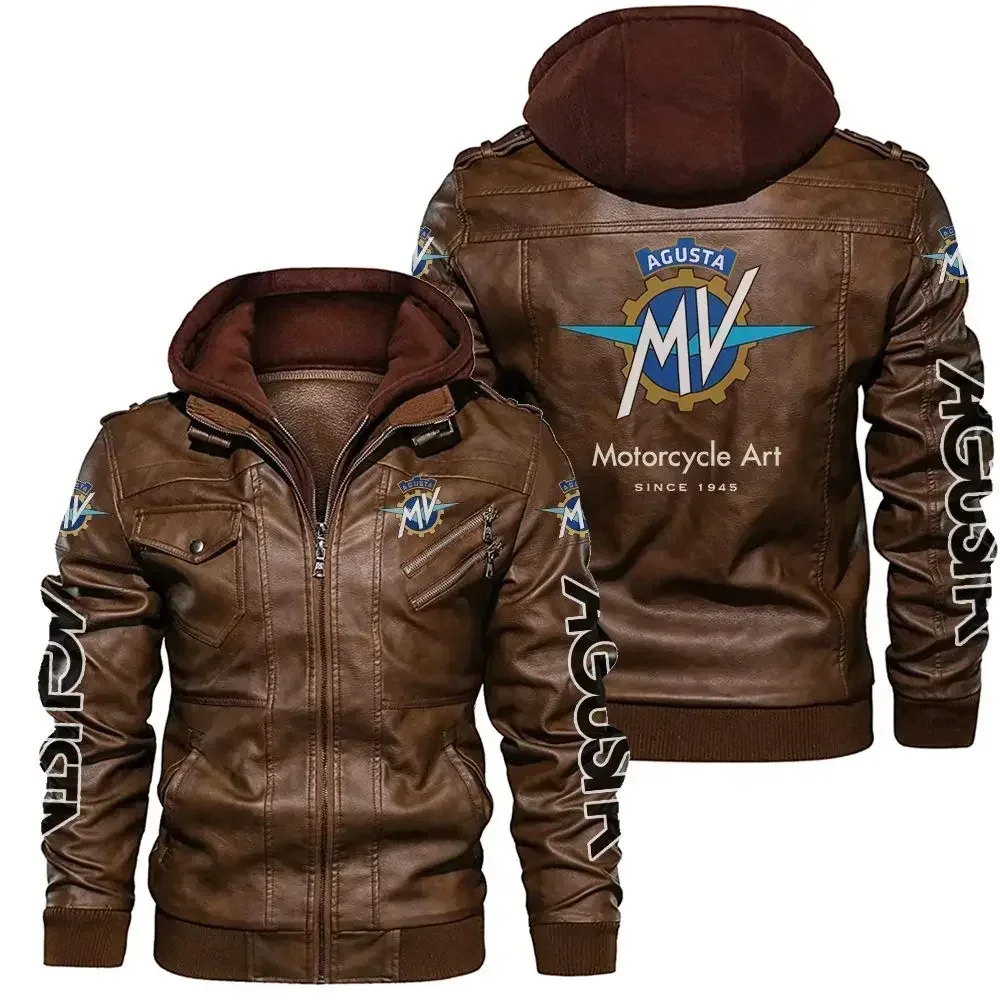 Giacca in pelle con logo Mv Agusta da uomo Giacca in pelle da motociclista primavera autunno Giacca a vento Cappotto Ropa De Hombre