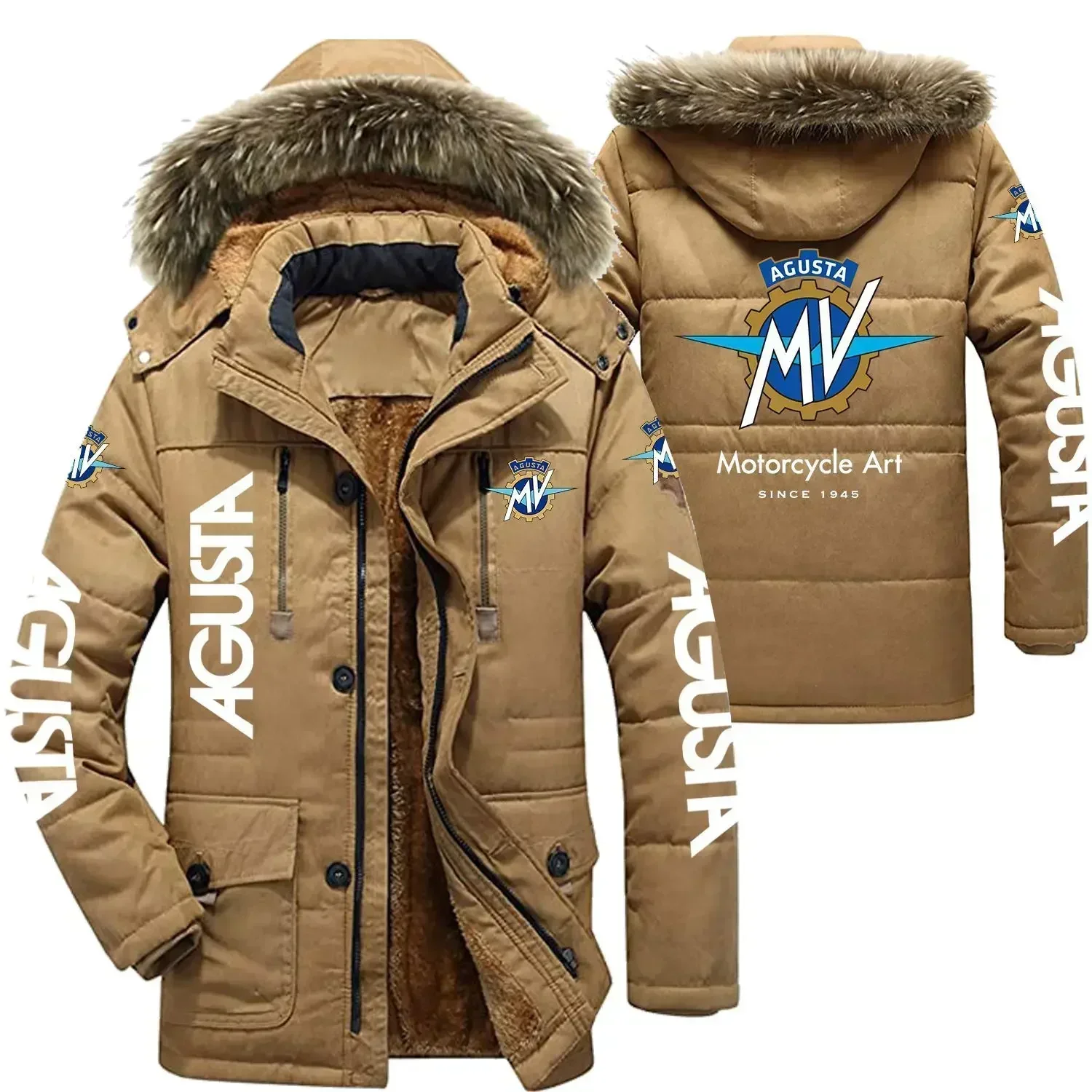 MV Agusta Logo Giacche invernali in cotone da uomo Parka con cappuccio Fodera in pelliccia di agnello Giacca da moto moda ispessimento freddo da uomo in peluche