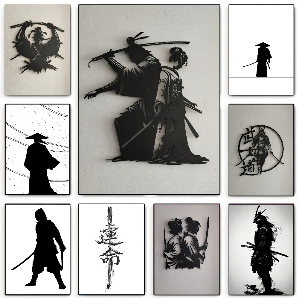 1PCNero e bianco Samurai giapponese Silhouette Poster Stampa di carta Casa Soggiorno Camera da letto Ingresso Bar Ristorante Cafe Art