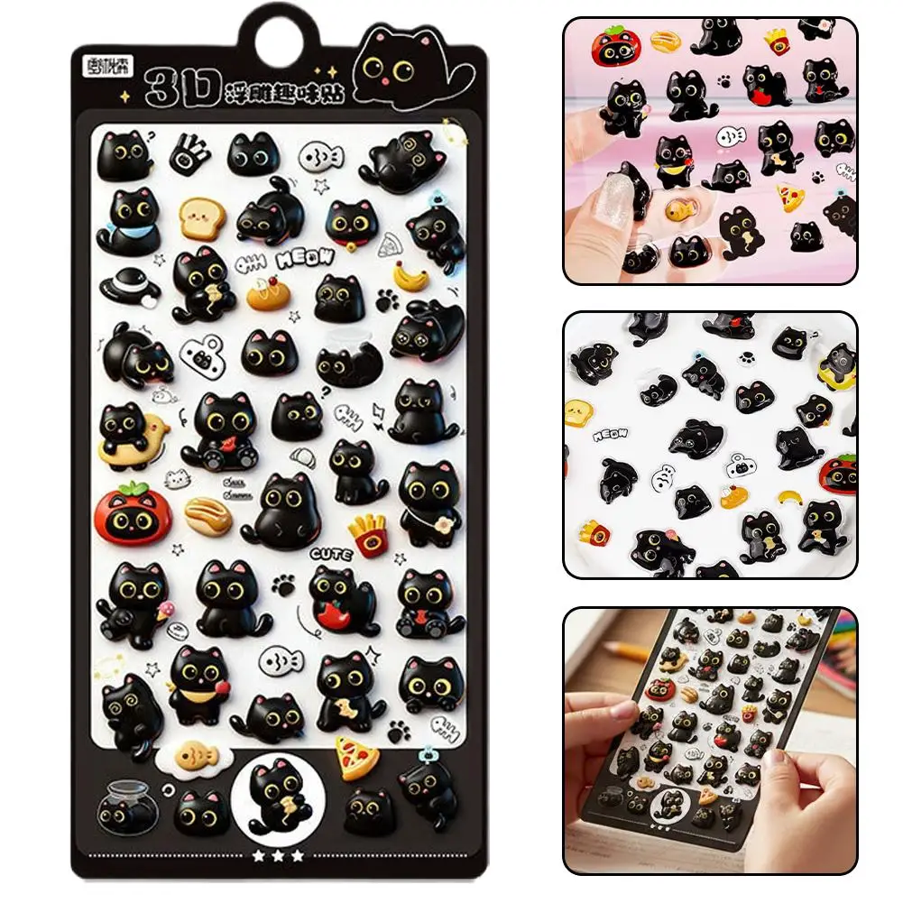 4 pezzi adesivi gonfi simpatico cartone animato 3D gatto nero e espressioni divertenti adesivi in rilievo per scrapbooking, diari e adesivi artigianali