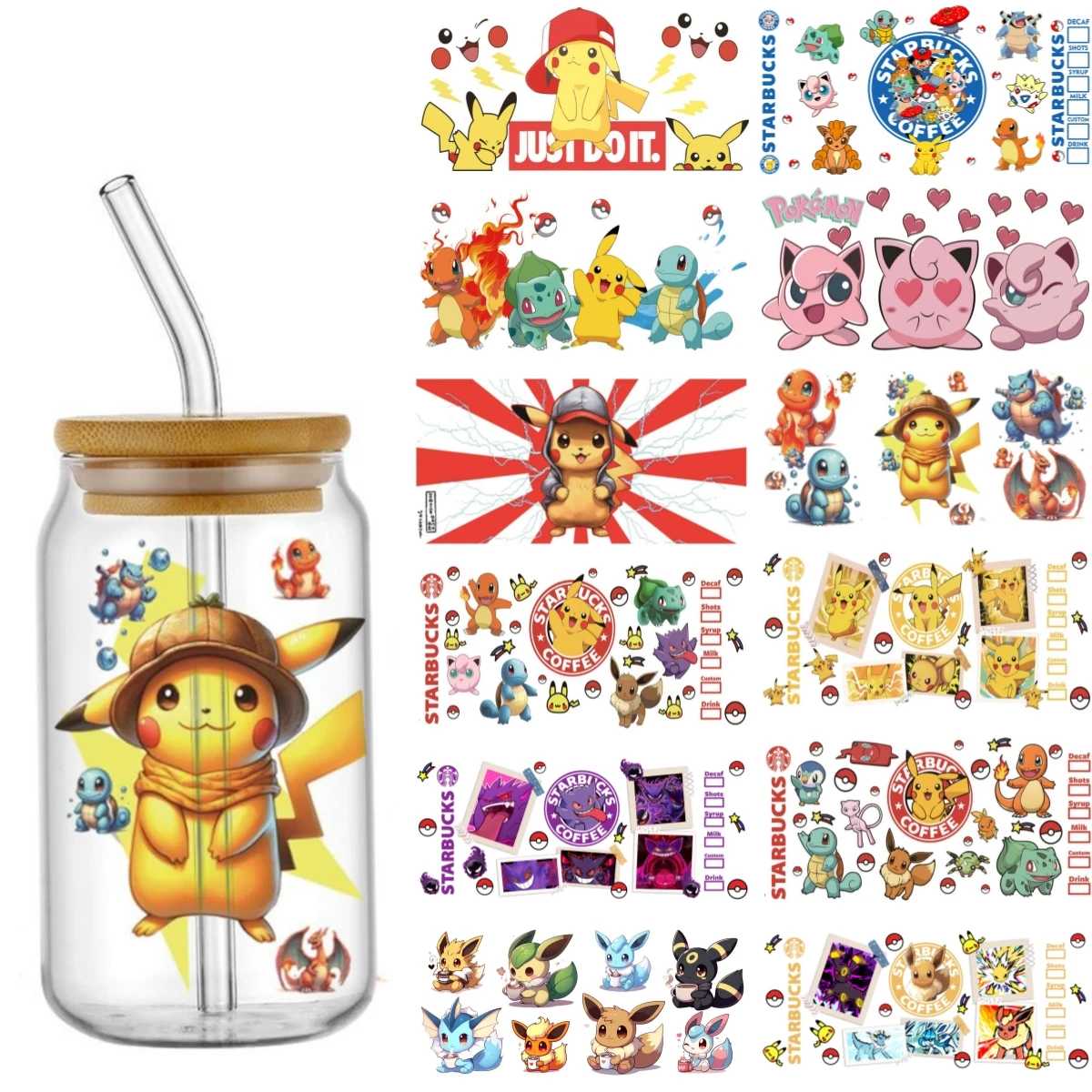 Adesivi in vetro con trasferimento UV DTF a forma di elfo dei cartoni animati, impermeabili, per bicchieri da 16 once.