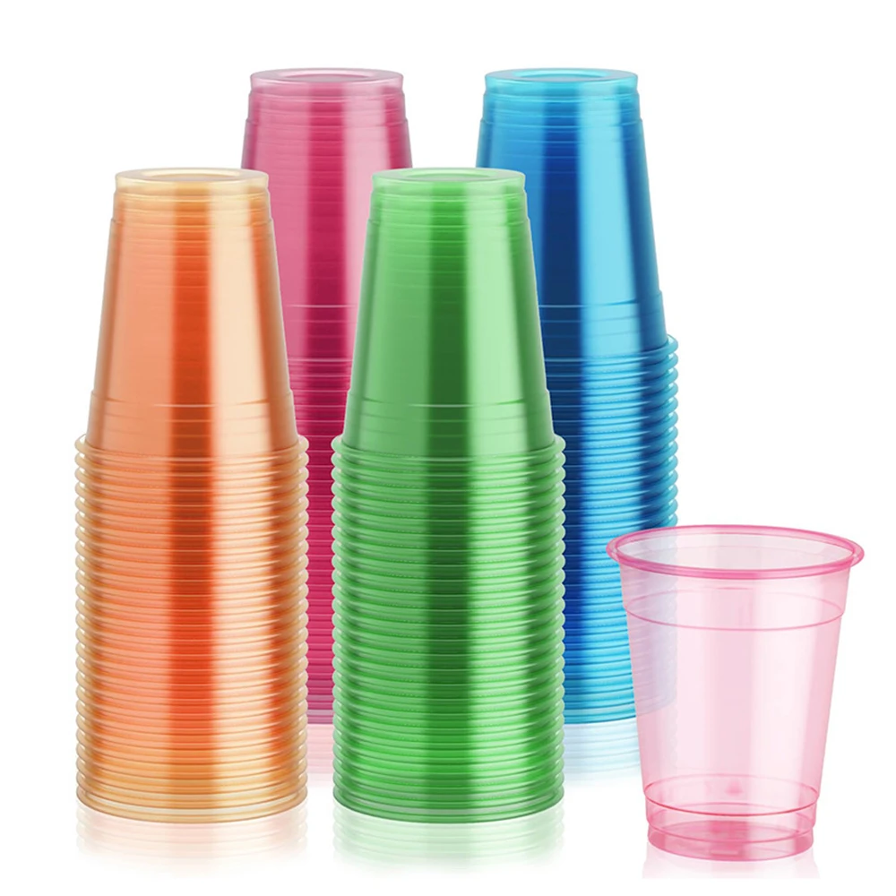 10-100 Pezzi Bicchieri di Plastica Luminosi al Neon, Bicchieri per Feste in Colori Neon Assortiti, per Matrimoni, Compleanni, Bicchieri Usa e Getta
